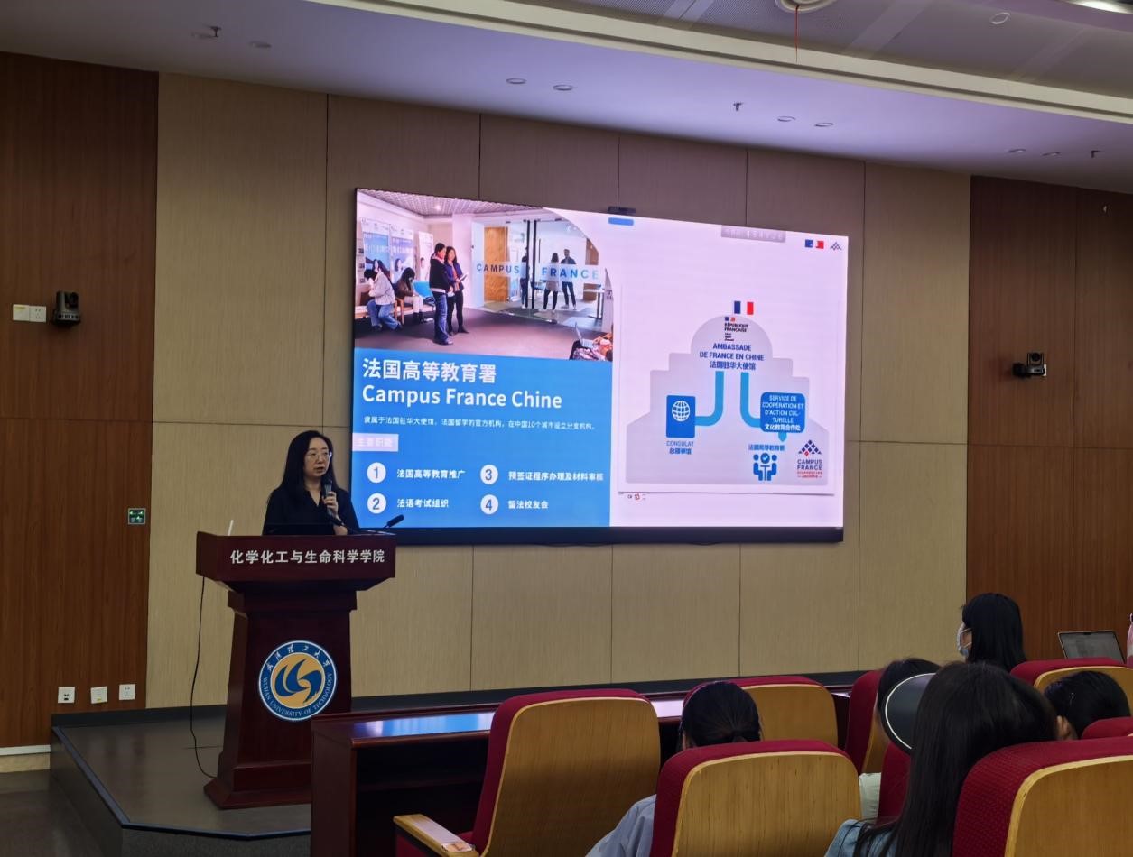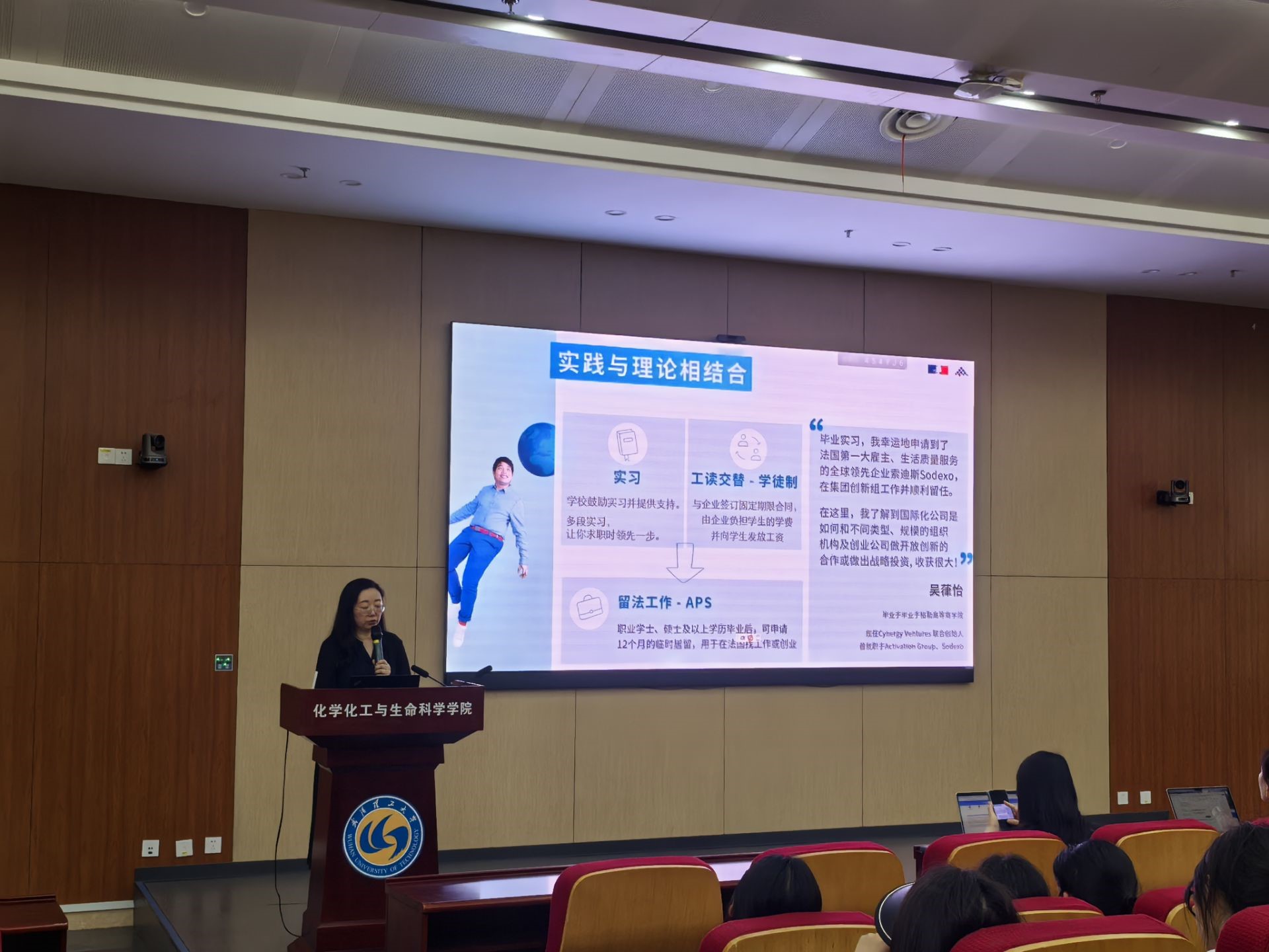 此外,焦老师还有针对性地展示了可供马赛学子参考的海外留学深造途径以及职业发展规划。她特别指出,法国作为欧洲生物医药产业核心区,在药物研发、生物技术领域具有显著的国际竞争力。另外,针对留法学习生活保障方面,法国高校构建了完善的教学支持体系与生活服务网络,员工可依据个人发展规划灵活选择工学结合模式,实现学术深造与职业实践的平衡发展。焦老师同时还强调,法国政府积极接纳国际人才留法就业,为留学毕业生提供了多元化的职业发展政策支持。